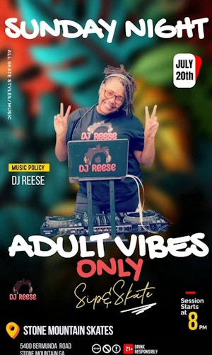 In addition to her DJ career, DJ Reese has been in the medical field for over 20 years and a passionate skater since the early 2000s, often seen gliding at Golden Glide. After a brief hiatus, she made a triumphant return to the skating rinks in 2023, debuting at Sparkles during their adult sessions and continuing to light up Thursday nights for a year.