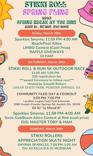 Come out and roll with Stikki Rollers during our 2nd Annual Stikki Roll Spring Fling Skate Party Weekend