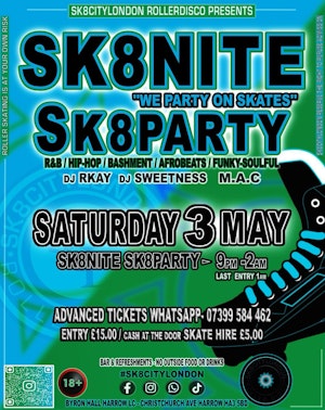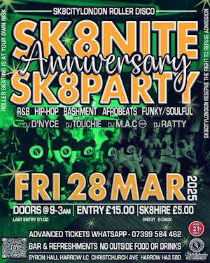 Byron Hall is the biggest, pillarless roller rink in London and Sk8CityLondon invite skaters to come and party with us at our 10 year Anniversary Sk8Party.